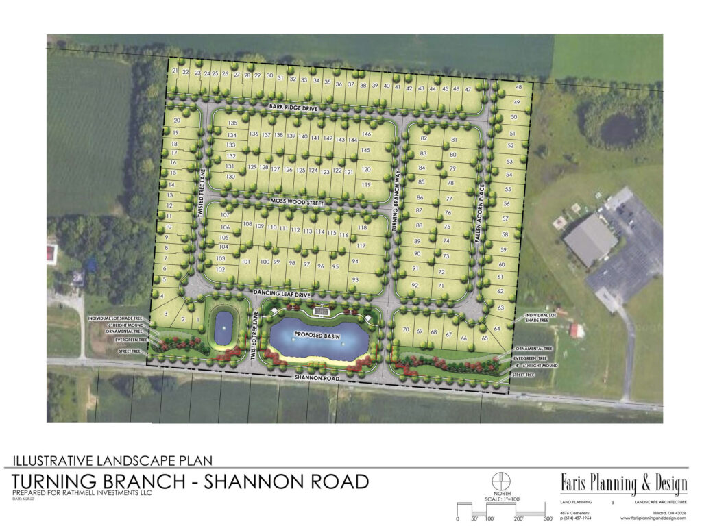 Turning Branch has been zoned and utility plans are being designed for construction with groundbreaking scheduled for Q1, 2024. The 30.44 acre development located on Shannon Road in the City of Columbus and will be the site of 146 single-family lots in a partnership with Fischer Homes, who will be providing the houses.